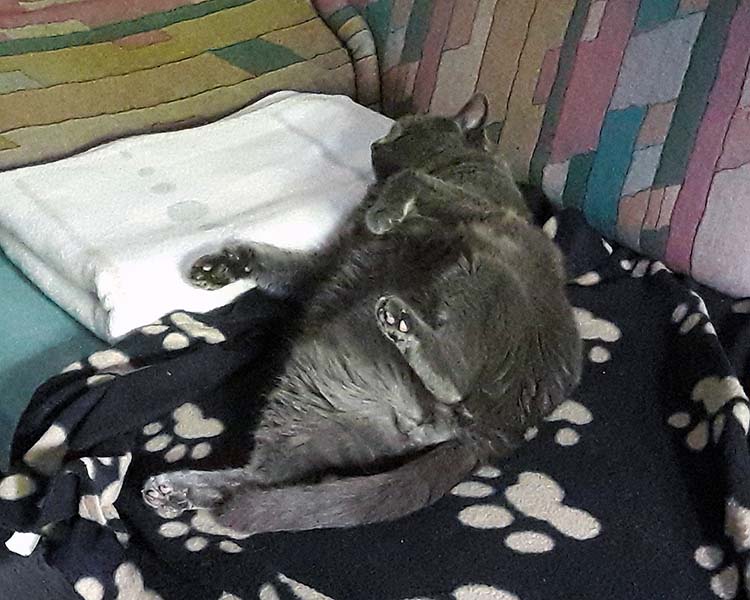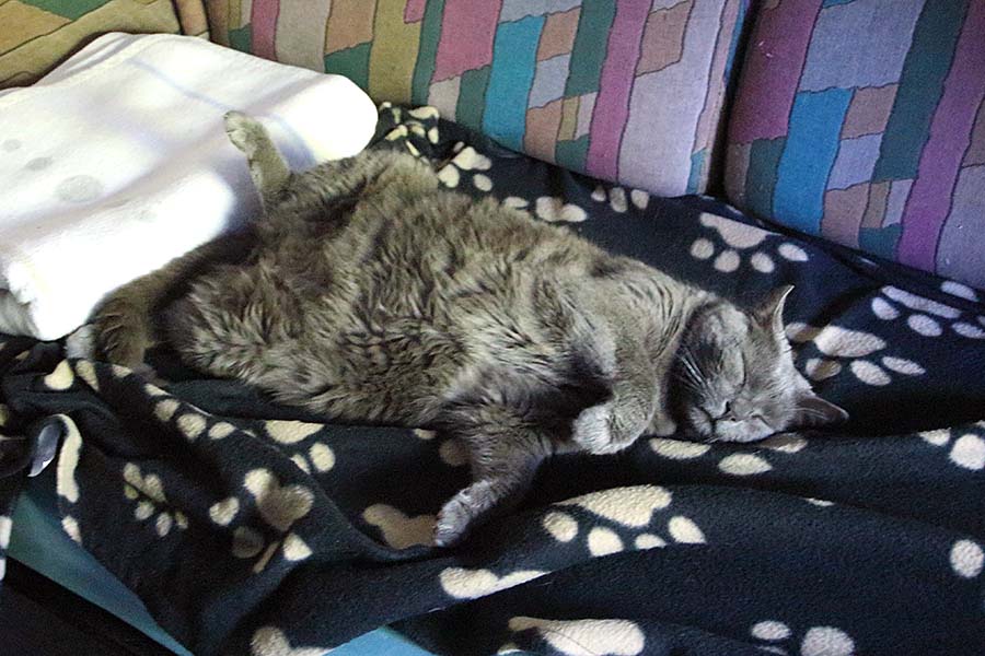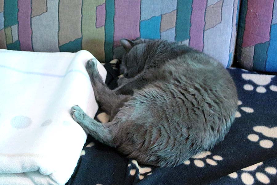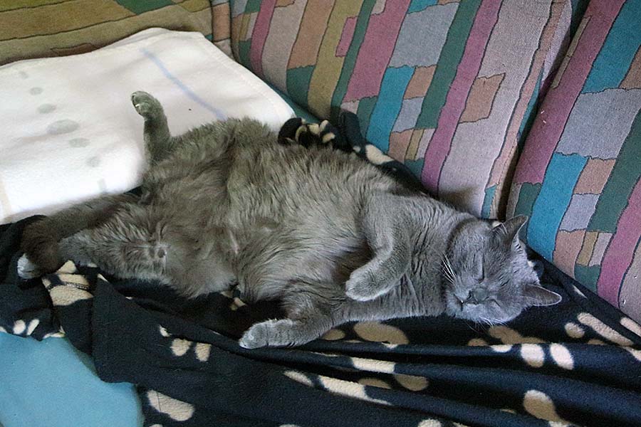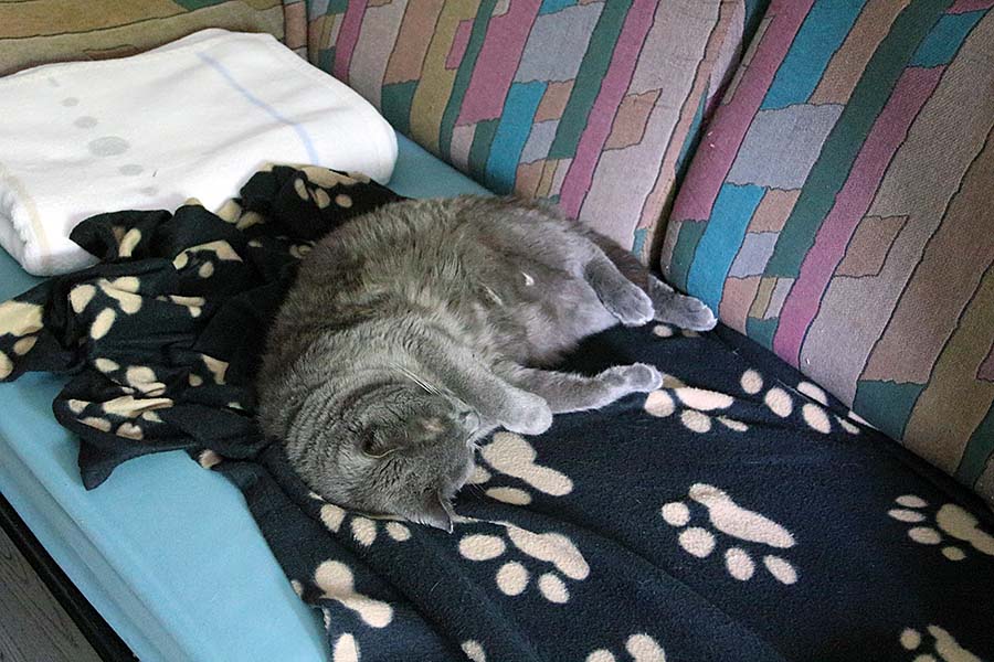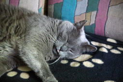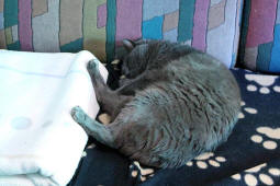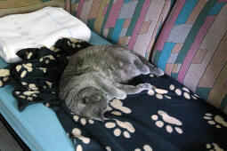 in „Herrchen's“ Zimmer steht eine Couch mit meinem Katzendeckchen