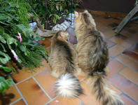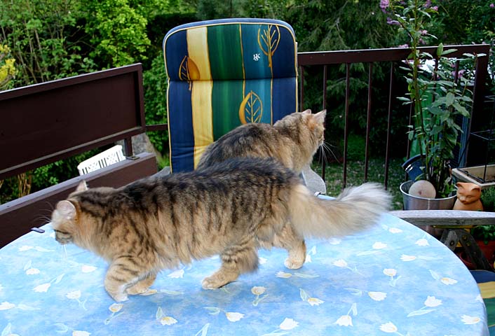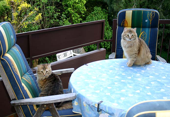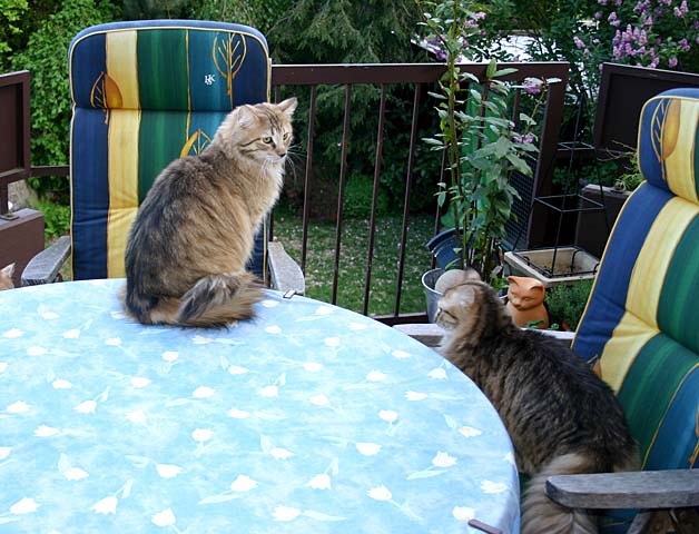 Während Cathy's und Arnd's Urlaub sind Isabella und Ikarus wieder zu Besuch. Vom Balkon kann man wunderbar die Vögel ... äh, beobachten. |