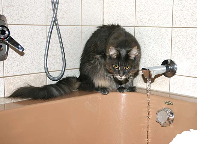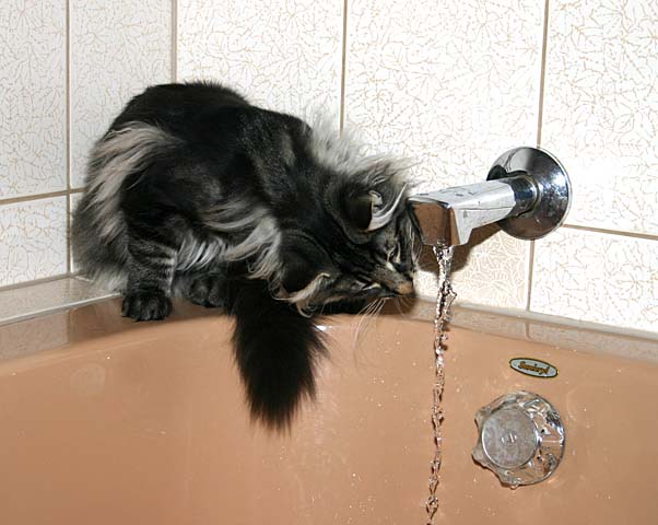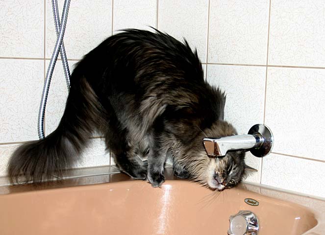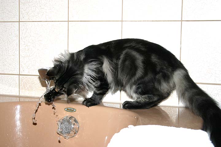| Luna hat eine besondere Eigenheit: sie trinkt nur fließendes Wasser aus dem Wasserhahn | ||||