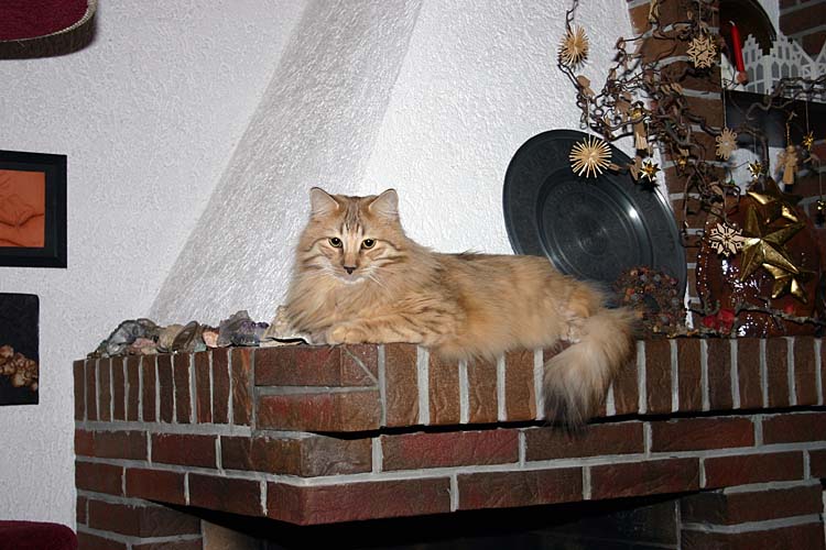 Ikarus findet es auf dem Kamin sehr gemütlich |