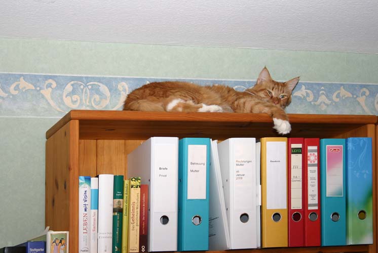 | Wotan hat sich ein besonderes Plätzchen ausgesucht | ||